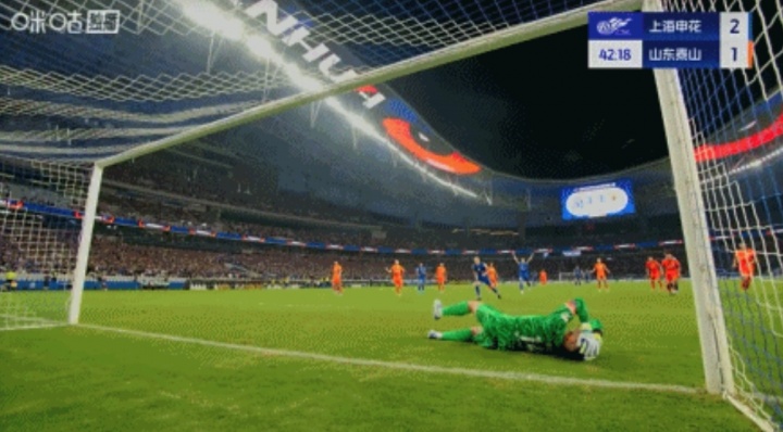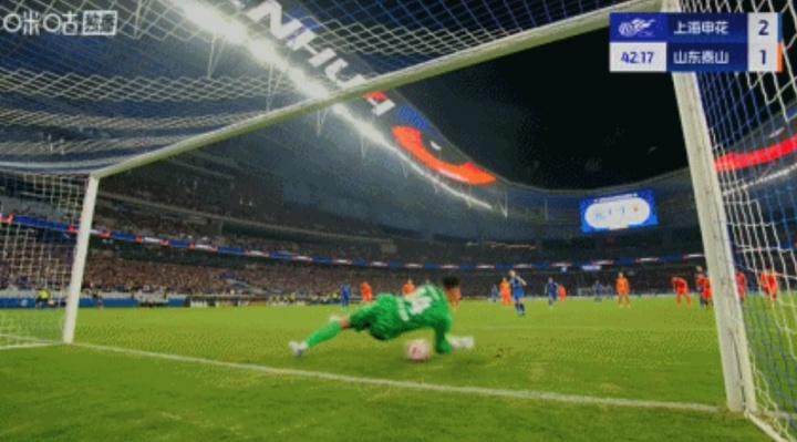 无比懊恼!王大雷差点就扑出吴曦点球,飞身扑救落地后双手捂头